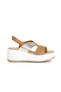 Sandals with two-tone crossover. comfortable shoe shape. 6 cm wedge.