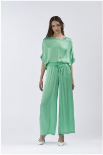 Wide palazzo-type trousers with elasticated waist made of viscose satin. comfortable and practical for an impeccable casual look.