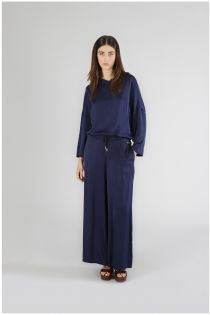 Wide palazzo trousers with elasticated waist made of viscose satin. comfortable and practical for an impeccable casual look.