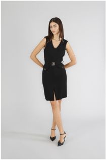 Elegant sheath dress. sash with golden logo in fabric made of fluid and draping fabric. "v" neckline and front slit. hidden zipper on the back. perfect to combine with the coordinated jacket for an office look refined and elegant at the same time.