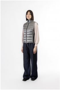 Padded waistcoat that outlines the waistline. with an essential but always current line. double slider zip closure zip pockets. made of a light and impalpable nylon with a super-shiny appearance. versatile and practical an essential item in the wardrobe of the new autumn winter season.