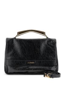 Naplak leather-effect handbag with flap, rigid metal handle, gold lettering and removable shoulder strap for a versatile style.