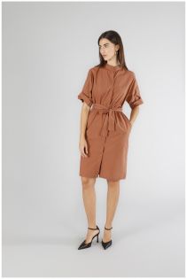 Shirt dress midi dress with fabric sash made of garment-dyed parachute canvas. long roll-up sleeves. slit on the back. wear it with sandals to make your look casual and unique.