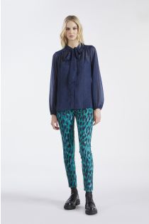 Shirt with sash at the neck in a lively georgette fabric with delicate touches of lurex