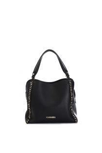 Shopper in hammered material with chain and thread. automatic magnetic closure. zipped partition.