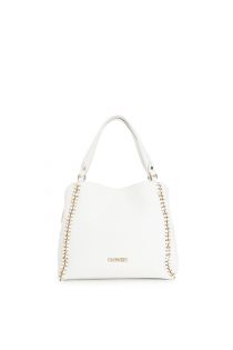 Shopper in hammered material with chain and thread. automatic magnetic closure. zipped partition.