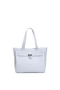Shopper bag with maxi “cafènoir firenze” high-frequency logo. double handles with wrapped buttons. pocket with metal clasp and logo padlock. zip closure.