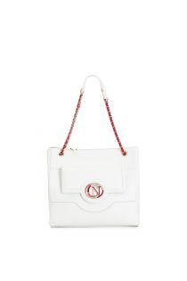Shopper with multicoloured oval enamel logo. flap pocket on the front. shoulder strap with threaded chain. zip closure.