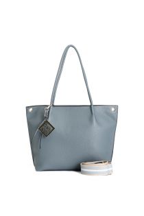 shopping bag in grained material and removable ribbon shoulder strap light blue