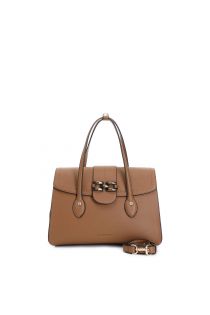 Shopping bag with flap and painted clamp application. magnetic closure. removable shoulder strap.
