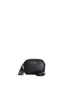 shopping bag with flap, painted clamp application, removable shoulder strap black
