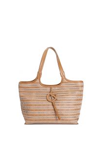 Shoulder shopping bag with woven mesh front panel and cafènoir logo with tie knot. practical zip closure modern style for every occasion.