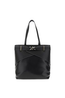 Faux leather shopping bag with a geometric design, a decorative loop, and a metal accessory. Practical and roomy, it's perfect for any occasion.