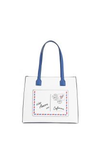 Shopping bag with patch pocket and postcard print long handles for comfort and original design. perfect for a casual and practical look with style.