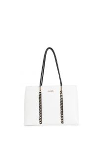 Elegant shopping bag with tubular handles and metal chain details with threads. perfect for adding a touch of style to your days.