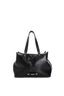 Shopping bag in croco print synthetic material. application of tags with metal lettering. zipper closure. internal zip pocket.