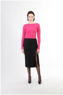 Short tight-fitting under-jacket sweater with rib and braid made of viscose blend yarn. the shirt has long sleeves and a bateau neckline. perfect to be worn with any combination.