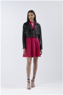 Short bomber jacket made of faux leather. collar with lapels long sleeves. zip fastener.