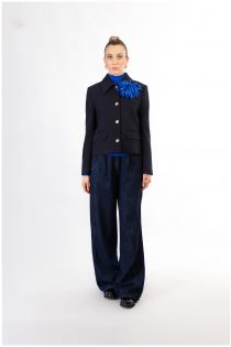 Short single-breasted coat with collar and golden buttons. an essential and versatile wardrobe piece it goes with all styles.