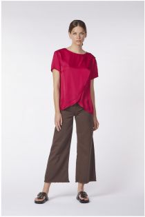short-sleeve linen and viscose blouse with wraparound crossover cyclamen