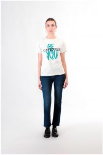 Short-sleeved t-shirt made of stretch cotton with "be you cafenoir" print on the front.