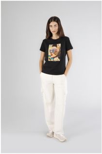 Regular fit short-sleeved t-shirt made of stretch cotton jersey. the print reproduces a woman's face with sunglasses.
