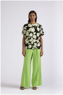 short-sleeved blouse in printed viscose satin maxy black flower