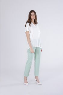 Women's blouse with short kimono sleeves in flowing and lightweight viscose marocain. a v-neck and refined satin trim enhance the simple design ideal for elegant and everyday looks. the model is 171 cm tall and wears a size s. fit: regular.
