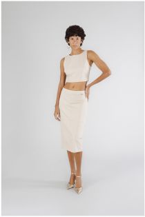Short sleeveless top made of stretch fabric. invisible zip on the back. perfect to combine with the coordinated skirt for a refined and elegant look at the same time.