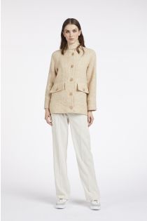 Short coat with raglan sleeves made of a particular wool blend fabric. The lining is printed with an exclusive CafèNoir pattern
