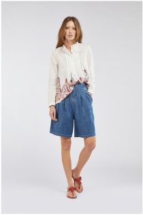 Shorts in soft chambray fabric with applied rhinestones on the pockets that add a touch of vivacity. Small pleats at the waist that create slight volume at the pockets.