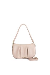 Shoulder bag with flap with pleats on the front. short tubular shoulder strap and removable shoulder strap.