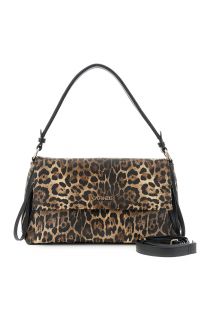 Soft faux leather bag with a leopard-print zip flap and metal charm. A removable shoulder strap and glamorous details create a bold and versatile style.