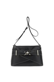 Faux leather shoulder bag with a decorative loop and metal accessory featuring a refined, geometric design. Practical and versatile, it's perfect for any look.