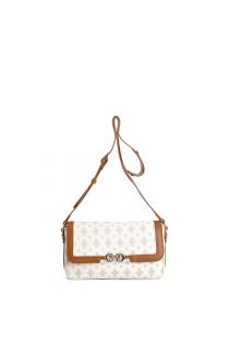 shoulder bag with monogram flap, contrasting trims and logo tan