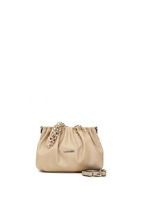 Medium-sized bag with soft pleats and large chains to be worn on the shoulder.
