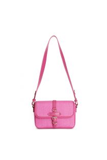 shoulder bag with straw flap hot pink