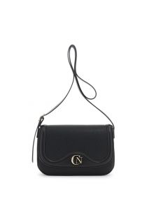 Adjustable shoulder bag in grainy faux leather with a contoured flap, padded frame and metal café logo for a distinctive and elegant touch.
