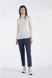 Turtleneck model T-shirt in silk blend fabric. The stitching is in a contrasting colour.
