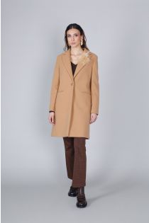 Basic, clean-cut, single-breasted coat with a single-button closure. Embellished with a feather brooch, it's perfect for a casual-chic look with a sophisticated touch. Regular fit. The model is 173 cm tall and wears a size S.