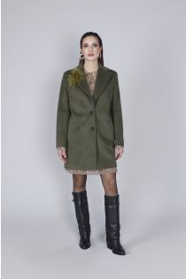 Single-breasted coat with a back half-belt and removable feather brooch. Clean, elegant lines ideal for a casual-chic look in the colder months. Regular fit. The model is 172 cm tall and wears a size S.