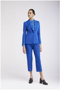 Single-breasted jacket with peak collar made of a warm wool fabric.