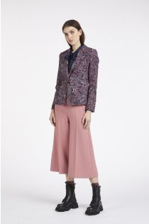 Single-breasted jacket made in a comfortable printed super stretch fabric, refined rivets marking and customising the pockets