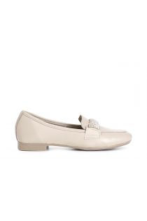 single-colour leather loafers with micro-rhinestones taupe