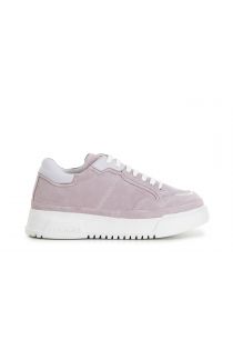 Lightweight delicate sneakers made of single-colour suede with a box sole that is also lightweight and total white.