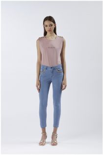 Five-pocket jeans in super-stretch denim canvas. jewel chain at front pockets. skinny fit