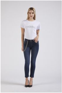 Skinny-fit super-stretch denim jeans. a customised jewel chain enriches the garment.