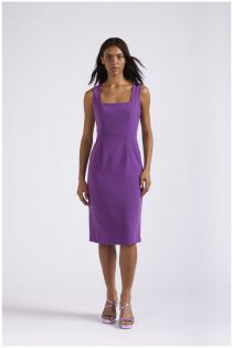 Midi-length sleeveless sheath dress square neckline. made of a cool flowing fabric.