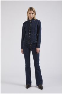 Fitted jacket with biker-style collar made of comfort denim canvas.