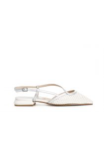 slingback ballet flats with mesh and rhinestones white/silver